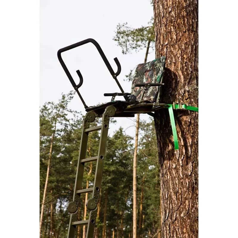 Całkowity montaż ambony trwa około 2 min. Posiada elementy samoblokujące, które bardzo uproszczają montaż. Demontaż trwa około 1 minuty. Drabina i siedzenie składają się automatycznie. Ambona jest bezgłośna w montażu, zajmuje bardzo mało miejsca, a jej stabilna konstrukcja gwarantuje pełną satysfakcję z użytkowania. W zależności od potrzeb można dowolnie zmniejszać wysokość drabiny.