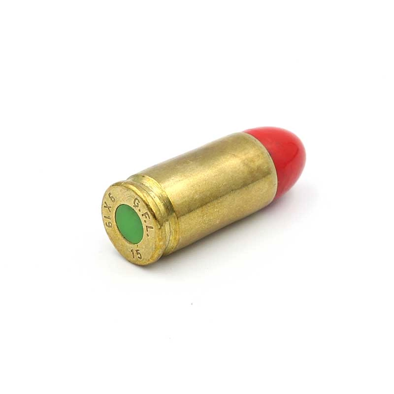 Wysokiej jakości nabój treningowy z pociskiem w kolorze czerwonym. Idealny do treningu strzeleckiego "na sucho".